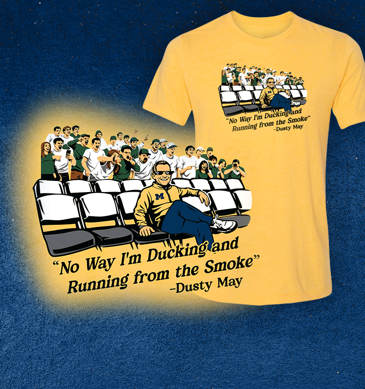 Michigan Wolverines Dusty May "No Way I'm Ducking and Running from the Smoke" T-Shirt